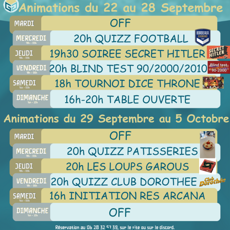 Agenda animations du 22 au Septembre au 5 octobre 2025