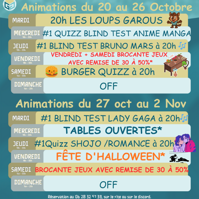 🎤 Marguerite vous invite à participer au BT Animé et Manga généraliste le mercredi 22 octobre à partir de 20hNoémie vous partage sa passion pour les animé manga Shojo / romance avec un jolie Quizz + BT le jeudi 30 Octobre à 20h.🍔 Enfin retour de notre Burger Quizz hilarant avec le retour du formidable Philippe 👨 !