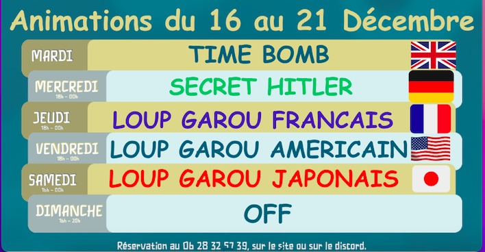 Time bomb, secret hitler + 3 loup garous différents pour vous proposer des parties folles.